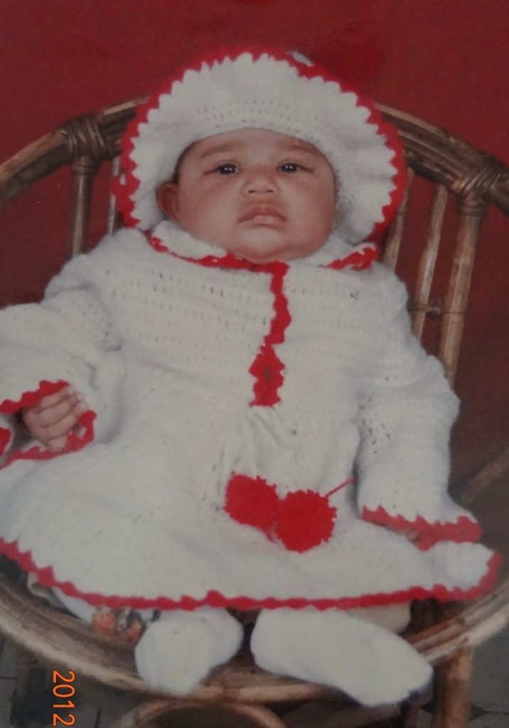The childhood pictures of Agrima Agrawal, wearing the sweaters and dress made by her mother Kirti Agrawal.